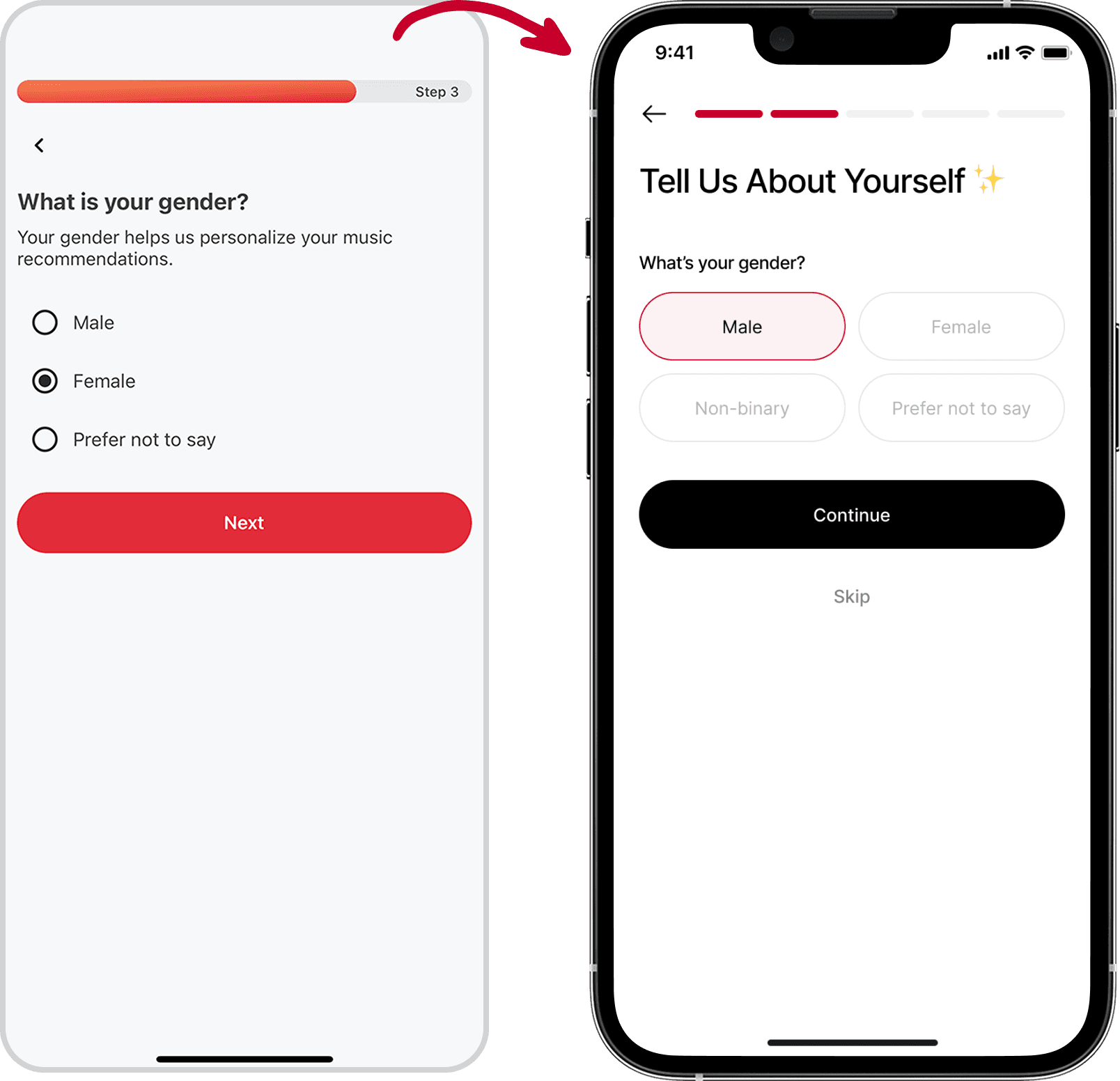 Based on sponsor and user feedback, we streamlined the onboarding process by skipping unnecessary screens and rewriting questions to be more relevant.