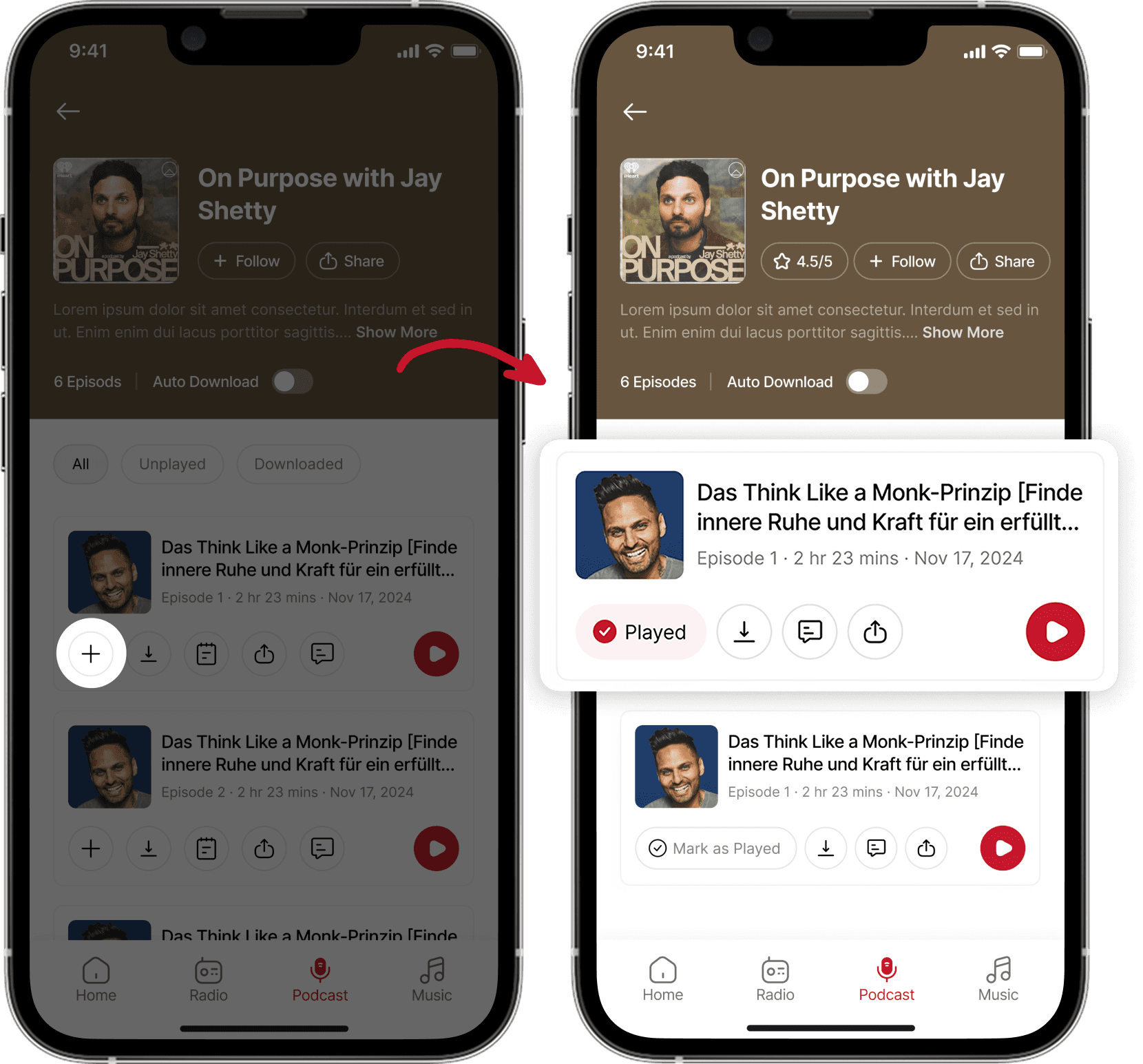 Supporting text is added to the button “Mark as Played” since it was a little bit confusing for users to understand its function without annotation